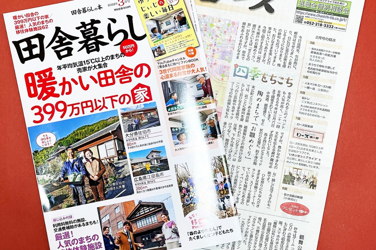※(宝島社)田舎暮らしの本3月号様、中日新聞ローズ様、朝日新聞夕刊全国版様では、読者プレゼントを提供させていただいています。