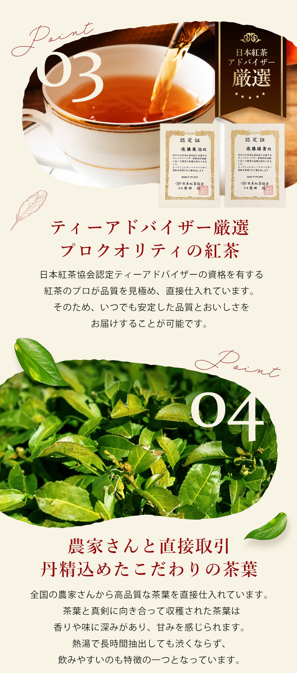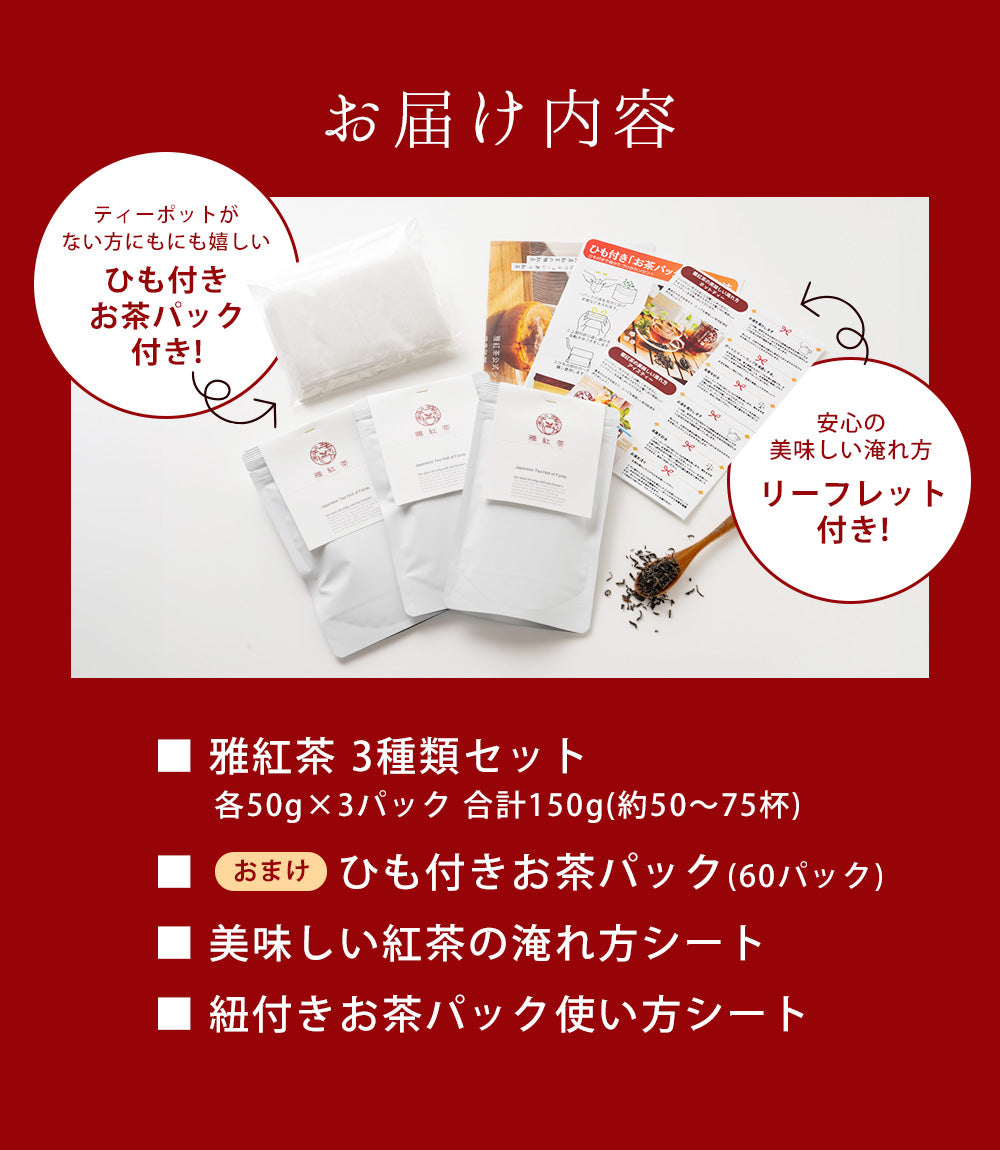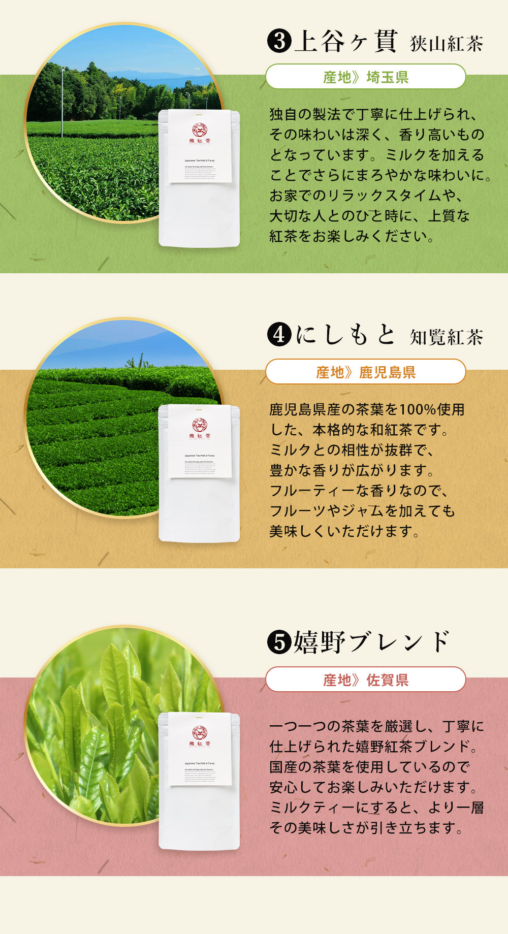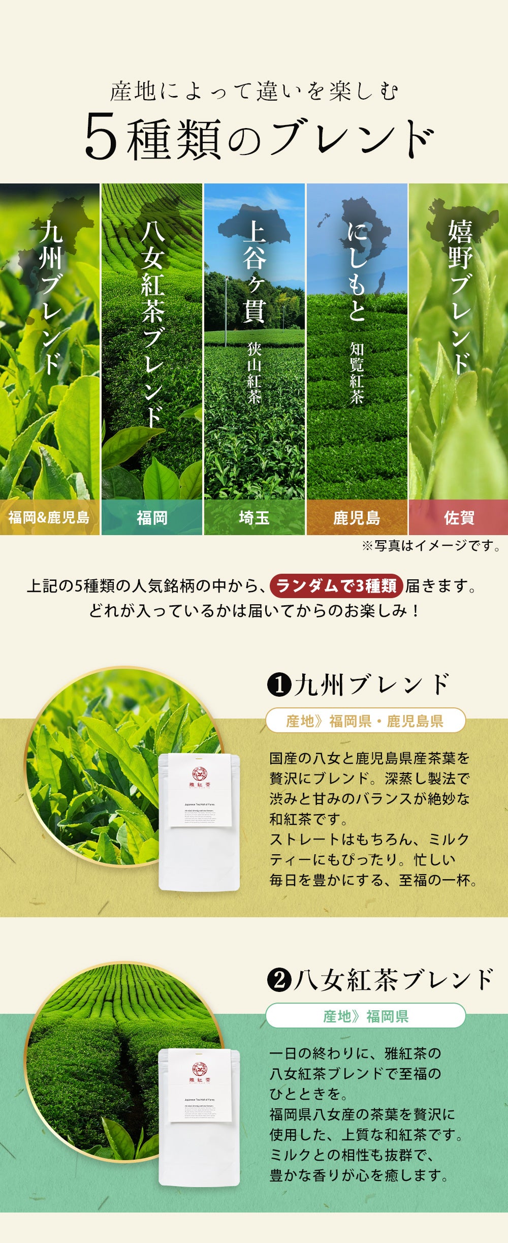 5種類の人気国産紅茶銘柄の中から、ランダムに選ばれた3種類が届きます。