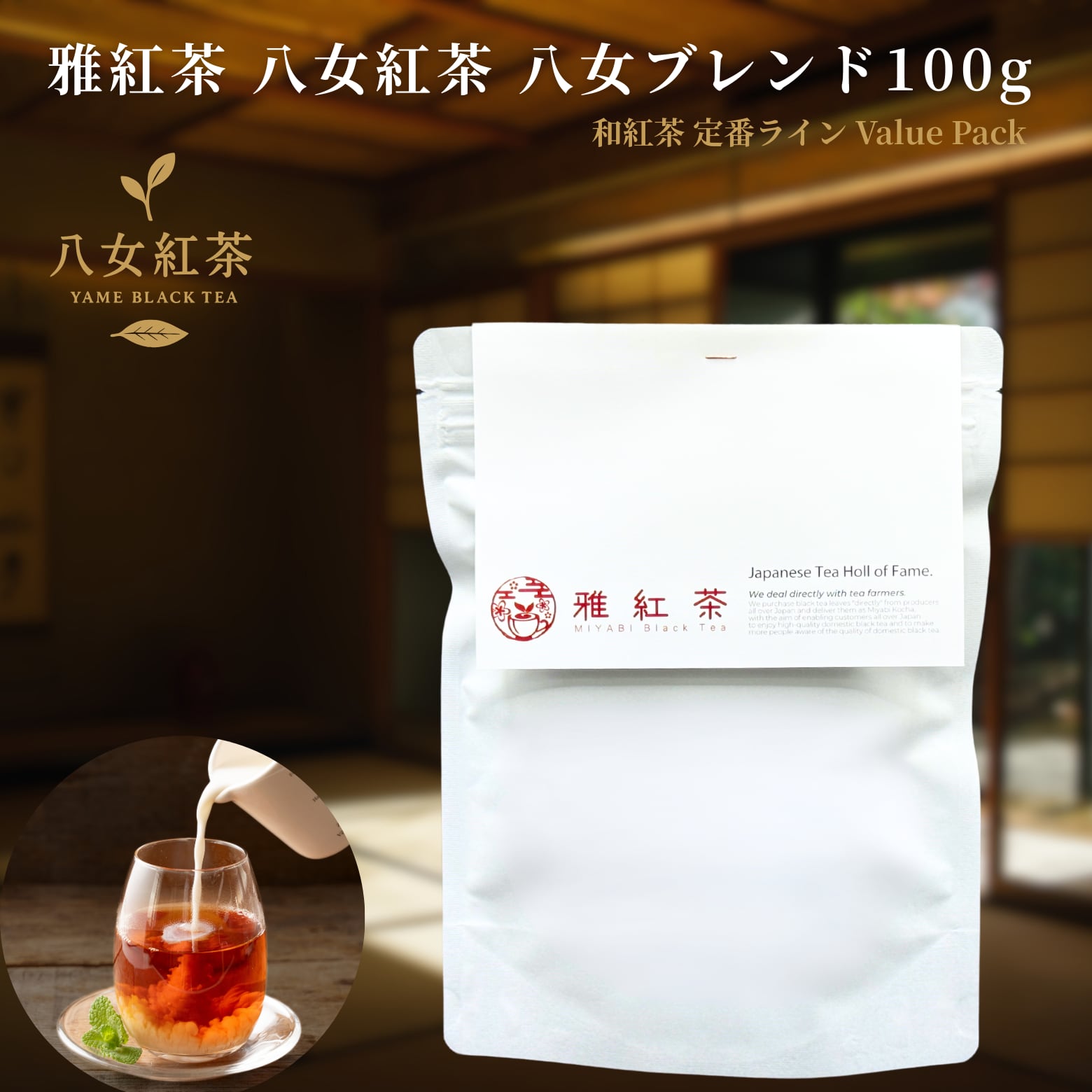 雅紅茶 八女紅茶 八女ブレンド 100g 国産和紅茶 リーフティー ミルクティー向き 毎日飲む方へ 大容量お得パック | お茶 日本茶 紅茶 和紅茶 茶の支度 送料無料 丁寧なくらし 【定番】【Value Pack】