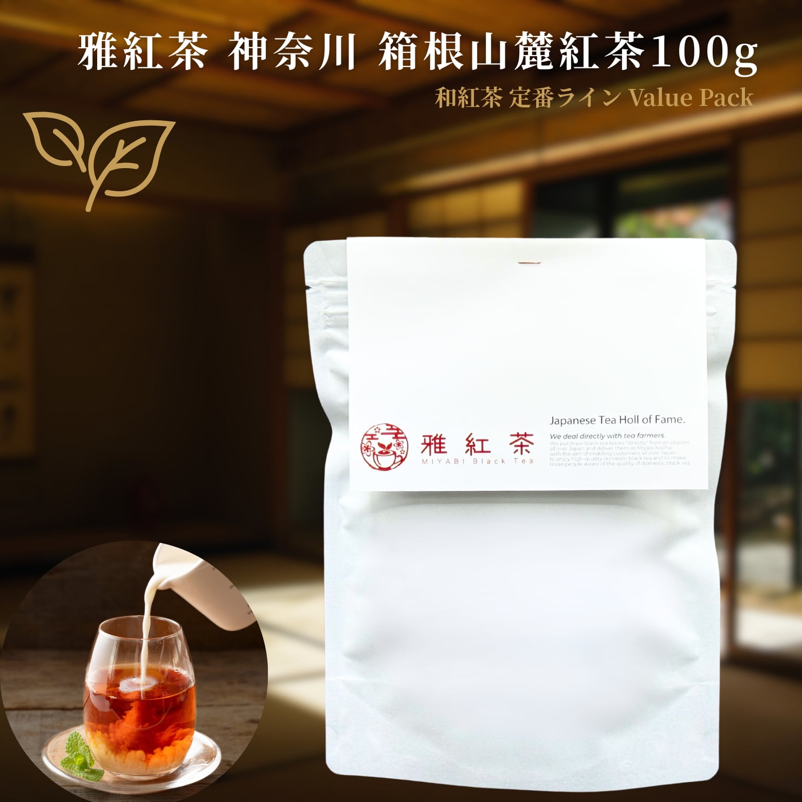 雅紅茶 箱根山麓紅茶 神奈川 100g 国産和紅茶 リーフティー ミルクティー向き 毎日飲む方へ 大容量お得パック | お茶 日本茶 紅茶 和紅茶 茶の支度 送料無料 丁寧なくらし 【定番】【Value Pack】