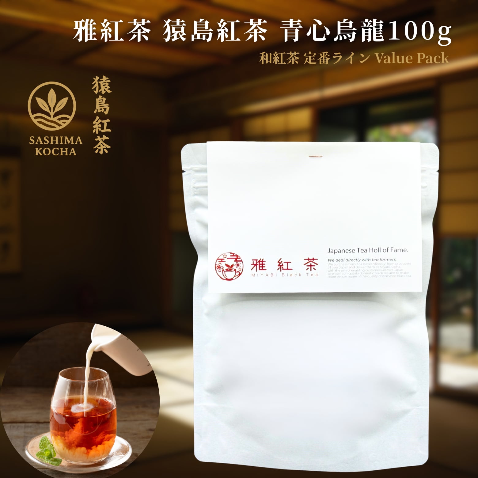 雅紅茶 猿島紅茶 青心烏龍 100g 国産和紅茶 リーフティー ミルクティー向き 毎日飲む方へ 大容量お得パック | お茶 日本茶 紅茶 和紅茶 茶の支度 送料無料 丁寧なくらし 【定番】【Value Pack】