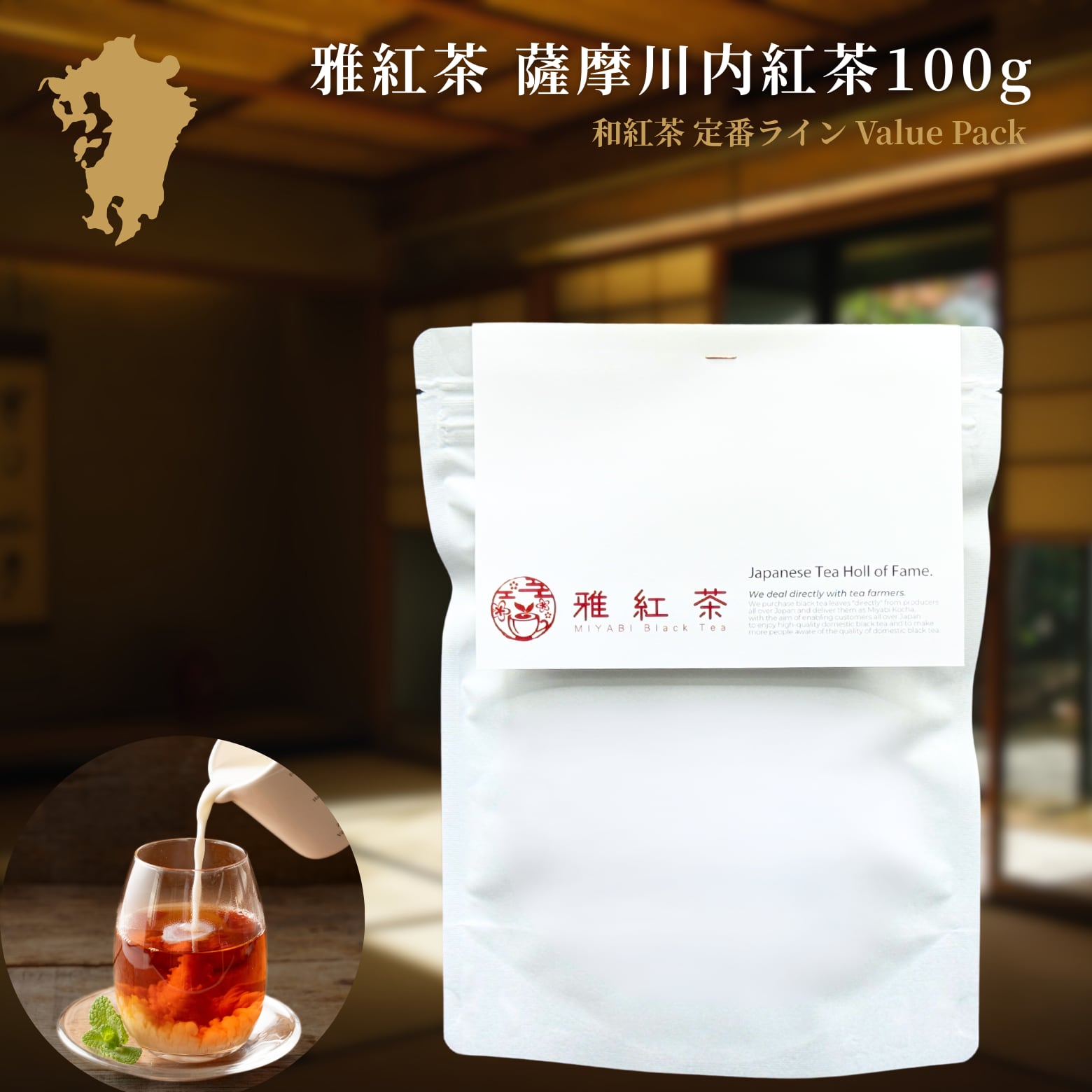 「雅紅茶 薩摩川内紅茶 100g」が新登場!鹿児島県薩摩川内市で丁寧に育てられた国産和紅茶です。香り高く甘みのあるバランスの取れたこの紅茶は、特にミルクティーとの相性が抜群で、毎日飲む方にぴったりの大容量お得パックでお届けします!