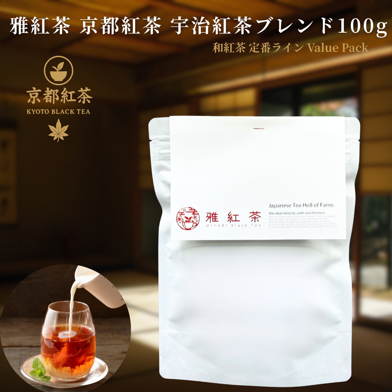 雅紅茶 京都 宇治紅茶ブレンド 100g 国産和紅茶 リーフティー ミルクティー向き 毎日飲む方へ 大容量お得パック | お茶 日本茶 紅茶 和紅茶 茶の支度 送料無料 丁寧なくらし 【定番】【Value Pack】