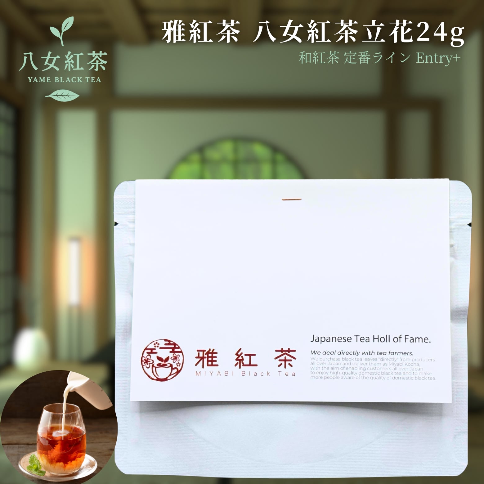 特別なティータイムを「お試しサイズ+ 雅紅茶 八女紅茶 立花 24g」で楽しみ、日常に贅沢なひとときをプラスしてみませんか?