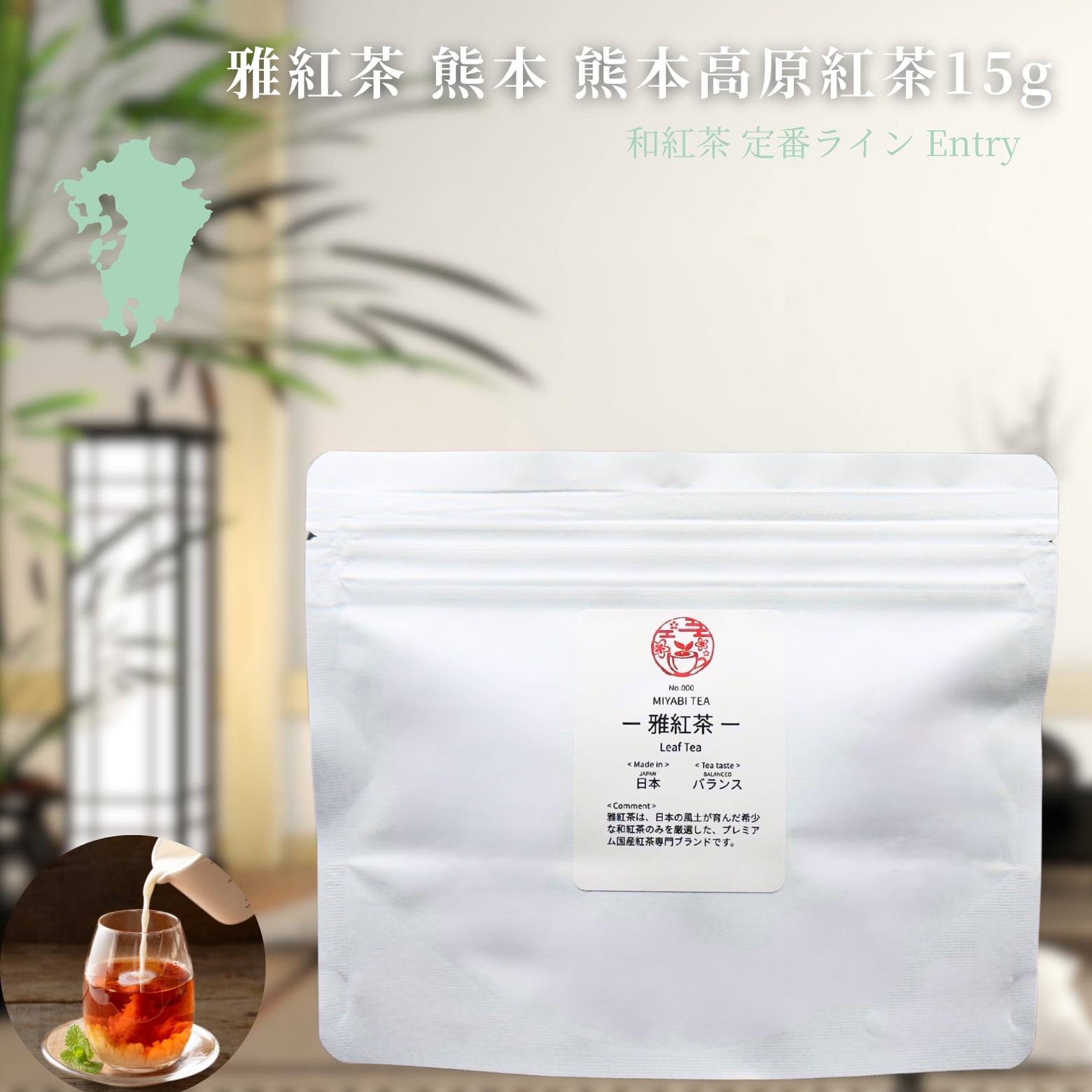 特別なティータイムを「お試しサイズ 雅紅茶 熊本高原紅茶 15g」で体験し、贅沢なひとときをお楽しみください!