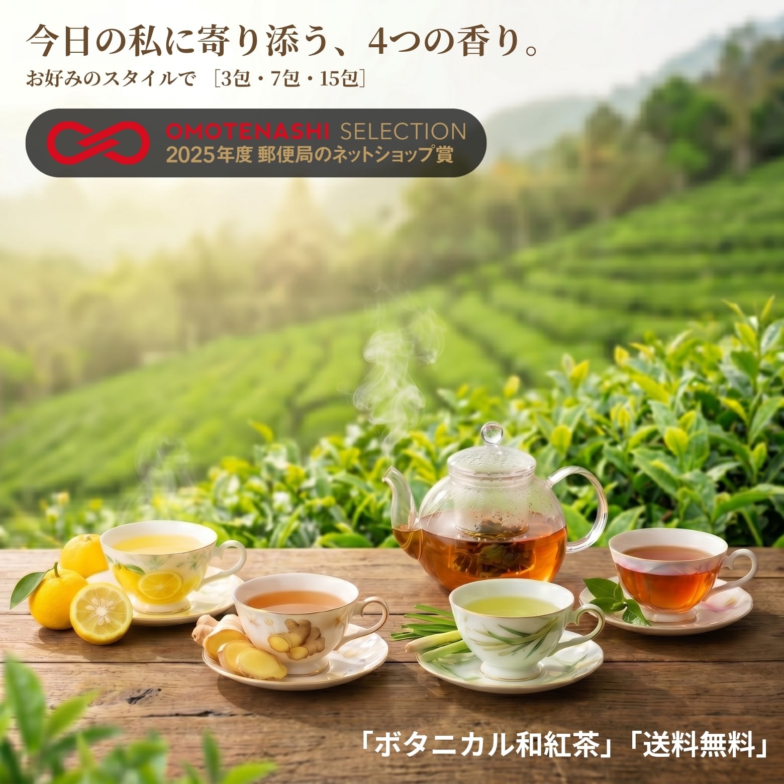 気分やシーンに合わせてお選びいただける、4種類のボタニカル和紅茶(ティーバッグ)をご用意しました。